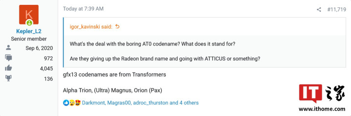 IT之家9月4日消息,消息人士Kepler_L2近日表示,AMD下代"gfx13"(GFX13xx)系列GPU的代号命名将源自《变形金刚》IP角色股票配资合同,其中全部的GMD芯粒将使用AlphaTrion(钛师傅)这一名称、下代Xbox的GPU代号为UltraMagnus(通天晓)、索尼PlayStation的GPU代号为OrionPax(擎天柱)。