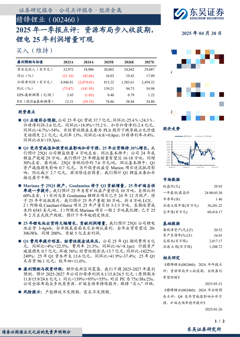赣锋品牌已获储能市场广泛认可,公司在储能电池与储能电站板块均实现扎实进展。该业务虽源于锂电池领域的自然延伸,但其贡献已远超预期:一方面提升了公司的溢价能力与盈利水平,另一方面强化了“赣锋一体化”的品牌形象。目前,已有客户明确优先选择具备一体化能力的企业合作,赣锋已成为其可靠选择。