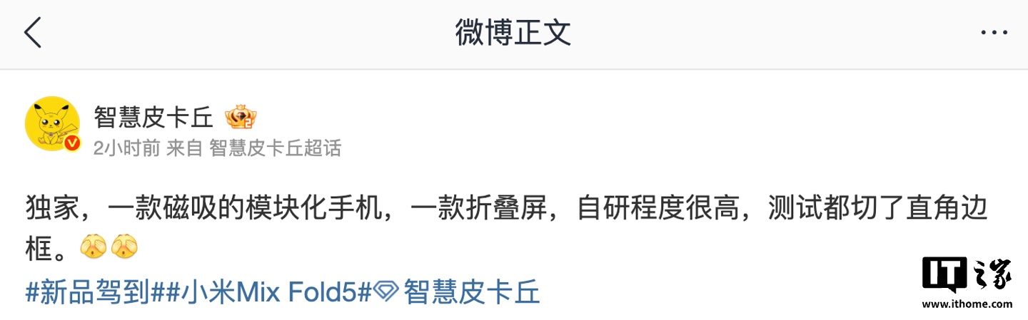 IT之家 3 月 13 日消息股票配资相,博主 @智慧皮卡丘 今天在微博透露,某厂的磁吸模块化手机、折叠屏新机自研程度很高。