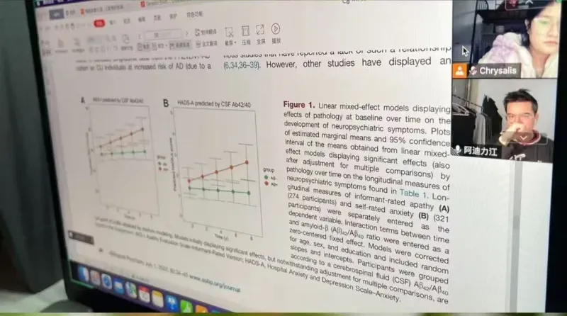 谢热古丽·阿纳依与阿迪力江·艾合麦提尼亚孜视频连线学习。图片由受访者提供